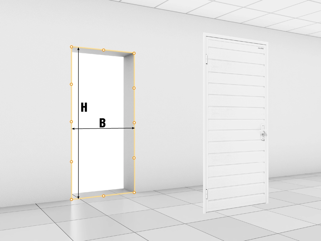 Замерьте высоту дверного проема (H) от выведенного, чистого пола. Для правильного замера необходимо знать точное положение нулевой отметки. Запишите минимальное значение.
